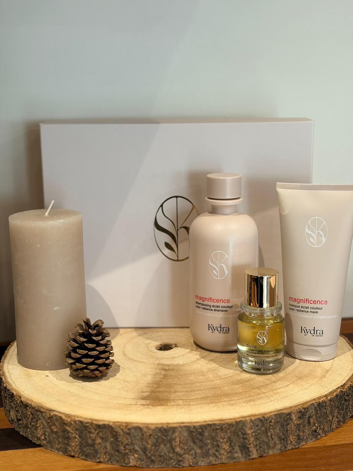 La méthode KYDRA LE SALON associe la fleur de Tiaré à ses pigments tinctoriaux( Jusqu’à 91% d’origine naturelle), ainsi que des « élixirs » véritables concentrés botanique (Jusqu’à 95% d’origine naturelle). L’huile de Tiaré est issue d’un savoir-faire ancestral de la Polynésie Française, elle est naturellement riche en acides gras et apporte une hydratation et une brillance incomparable à vos cheveux. Ses élixirs spécialement sélectionnés pour ses vertus protégeront votre cuir chevelu et votre fibre capillaire.